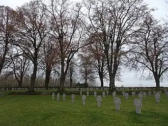 Dans ce cimetière de plan carré de 100 m de côté, reposent 975 soldats allemands.