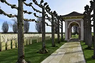 Le cimetière britannique est situé en bordure de la route départementale 929 qui relie Amiens à Saint-Quentin, en face du bois du Sart. 1 860 soldats y reposent parmi eux, 859 Britanniques, 984 Australiens, 9 Canadiens, 6 Néo-Zélandais et 2 Sud-Africains. Plus de 360 ne sont pas identifiés.