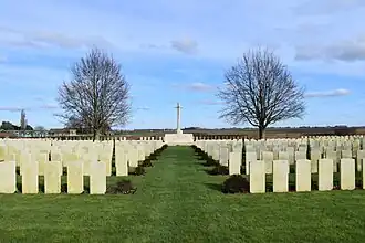 On relève parmi les morts, à la tombe 10 du carré V, rangée D, le caporal Herbert Ainsworth, du Tank Corps, tué le ; au carré 1, 1re rangée , à la tombe 12, deux soldats de la 3e escadrille de l’armée de l’air australienne, les lieutenants Edward Bice et John Chapman[2].