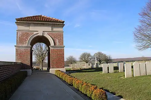 Le cimetière militaire britannique fut créé en juillet 1916. On y inhuma des corps jusque novembre 1916. En août-septembre 1918, les inhumations reprirent. Après le 11 novembre 1918, des dépouilles de soldats enterrées sur le champ de bataille des environs furent transférées dans ce cimetière[1].