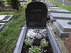 - ↑ Registre journalier d'inhumation du cimetière parisien de Bagneux (BAG_RJ19551956_01 p. 166, numéro d'ordre 3060).
