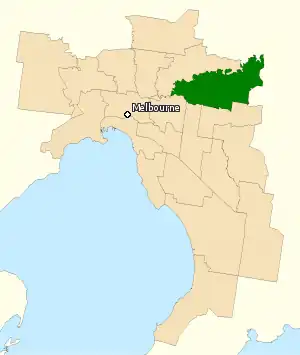La circonscription de Menzies est une circonscription électorale australienne située dans la banlieue est de Melbourne, au Victoria[1]. La circonscription a été créée en 1984 et porte le nom de Robert Menzies, qui est le premier ministre d'Australie à avoir occupé le plus longtemps le poste. Située dans la banlieue Est de Melbourne, elle comprend les quartiers de Bulleen, Doncaster, Donvale, Templestowe et Warrandyte.