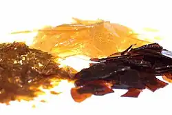 - la troisième qualité est d'un brun-rougeâtre ; elle fond plus difficilement que les deux premières, et laisse un résidu après la combustion.
