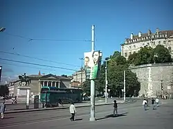 La place Neuve est aménagée au-delà des anciens remparts occidentaux de la vieille-ville à l'emplacement de l'une des portes de la cité médiévale, la porte de Neuve, au débouché de la rampe de la Treille.