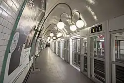 Les quais sont modernisés après 1988 par l'adoption d'une déclinaison particulière du style décoratif « Ouï-dire » — de couleur verte en l'occurrence —, caractérisée par des candélabres à globes au lieu des habituelles rames lumineuses à consoles courbes en forme de faux. Dans le cadre du programme « Un métro + beau » de la RATP, les couloirs de la station ont été rénovés le 20 décembre 2012[3].