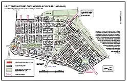 La cité se trouvant à l'origine en plein champ, son plan devait être théoriquement libre de contraintes. Le tracé de la cité doit quand même beaucoup au parcellaire d'origine ; l'architecte devant composer avec les limites de l'ensemble des champs acquis. Dans une esquisse datée du , on constate que l'architecte a conservé la plupart des grands axes de circulation ruraux lors de l'élaboration de son projet. Les liaisons entre les bourgs et hameaux ruraux n'étaient aucunement remises en cause par la création de la cité ; la cité s'intégrait donc parfaitement dans le tissu préexistant.