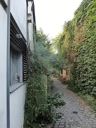 La cité verte est constituée au début du XXesiècle dans une ruelle qui faisait partie des propriétés de la congrégation des «Fidèles Compagnes de Jésus». Les ateliers d’artistes sont bâtis avec des matériaux de récupération d’une entreprise de démolition installée sur place. La façade en plâtre de l’un d’eux provient d’un théâtre.