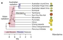 19. 1 2 (en) Guohong Albert Wu, Javier Terol, Victoria Ibanez et Antonio López-García, « Genomics of the origin and evolution of Citrus », Nature, vol. 554, no 7692, , p. 311–316 (ISSN 1476-4687, DOI 10.1038/nature25447, lire en ligne, consulté le )