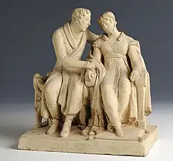 On retrouve également cette source d’inspiration dans les petits modelages en terre cuite que l’artiste crée à partir du début des années 1820, de même que des influences issues de la période Antique, de la Bible, d’auteurs latins tels qu’Ovide, et d’œuvres littéraires comme celles de Lord Byron. Ces petites pièces annoncent la mode des statuettes de l’époque romantique[5].