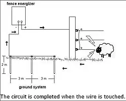 Le courant passe dans un fil métallique sans enveloppe isolante mais éloigné du sol (la masse électrique dans le système) grâce à des piquets isolés électriquement de ce fil. Le moindre contact d'un animal avec le câble permet au courant électrique d'être en contact avec la terre via le corps de l'animal (sauf cas de l'oiseau ou d'un insecte se posant sur le fil). Cela lui administre une décharge électrique désagréable qui le force à cesser le contact.