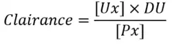 D'un point de vue quantitatif, la clairance est le rapport (à un instant donné) entre la quantité de produit éliminé par unité de temps et la concentration de la substance dans le fluide (plasma artériel en général) à cet instant. On mesure la clairance d'une substance en divisant la dose absorbée (dose administrée multipliée par le coefficient d'absorption) par la surface sous la courbe des concentrations C = f(t) (A.U.C. = Area Under Curve).