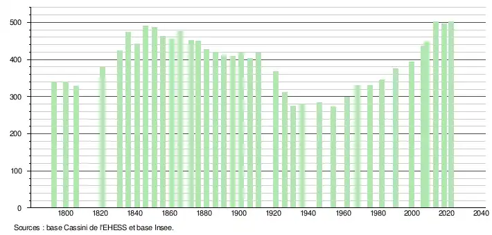 - ↑ Fiches Insee - Populations de référence de la commune pour les années 2006, 2007, 2008, 2009, 2010, 2011, 2012, 2013, 2014, 2015, 2016, 2017, 2018, 2019, 2020, 2021 et 2022.