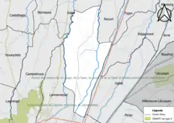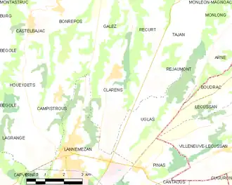 Les communes les plus proches[Note 1] sont[4] : Uglas (2,9 km), Réjaumont (2,9 km), Galez (3,0 km), Campistrous (3,3 km), Bonrepos (4,6 km), Tajan (4,7 km), Lannemezan (5,0 km), Houeydets (5,0 km).