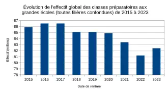 - ↑ « Les effectifs en classes préparatoires aux grandes écoles de nouveau en baisse à la rentrée 2022-2023 », sur enseignementsup-recherche.gouv.fr, (consulté le ).