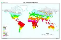 Les régimes de température des sols (Soil Temperature Regimes, STR), tels que frigid, mesic, et thermic sont utilisés pour classer les sols à certains des plus bas niveaux de classification de la taxonomie des sols. Le régime de température cryic distingue des groupes de niveau supérieur. Ces régimes sont basés sur la moyenne annuelle de la température du sol (mean annual soil temperature, MAST), la moyenne des températures estivales, et la différence entre la moyenne des températures de l'été et de l'hiver, toutes à une profondeur de 50 cm. On suppose généralement que le MAST (en °C) est égale à la somme des moyennes annuelles de la température de l'air, plus 2 °C. Si la différence entre la moyenne de température de l'été et l'hiver, est inférieure à 6 °C, alors on fait précéder "Iso" du nom de la classe de température du sol.