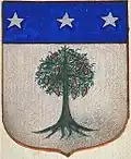 ![]() D'argent, au chêne de sinople, fruité d'or ; chargé de 3 étoiles du champ. |