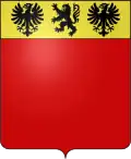 De gueules au chef d'or chargé d'un lion de sable accosté de deux aigles du même. |