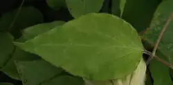 Les feuilles caduques de cette clématite sont parfois simples, parfois alternes et trifoliées. En moyenne, elles mesurent 8 cm. De mars à octobre les feuilles sont vertes, en novembre elles virent au jaune juste avant de tomber.
