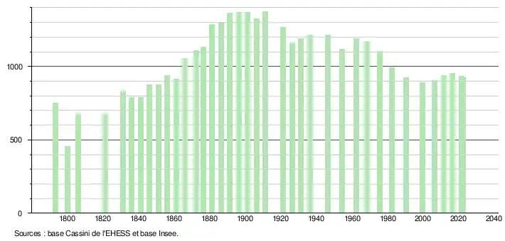 - ↑ Fiches Insee - Populations de référence de la commune pour les années 2006, 2007, 2008, 2009, 2010, 2011, 2012, 2013, 2014, 2015, 2016, 2017, 2018, 2019, 2020, 2021 et 2022.