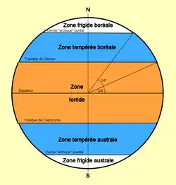 La division de la Terre en zones climatiques - liée à l'inclinaison de celle-ci par rapport à l'écliptique - a varié en nombre suivant les époques et les auteurs.