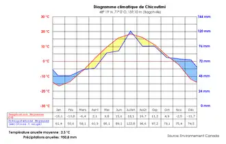 - ↑ « Moyennes et extrêmes pour les stations météorologiques du Saguenay–Lac-Saint-Jean », Environnement et Changement climatique Canada (consulté le )