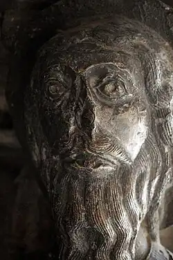 La statue centrale du pilier suivant a disparu et seules subsistent celles qui l’encadraient : le roi Salomon et la reine de Saba.