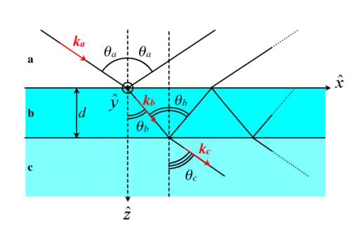 - Soient et respectivement les angles d'incidence et de réfraction à l'interface entre et (avec i, j = a, b ou b, c).
