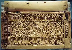 - ↑ (en) Amy L. Vandersall, « The Date and Provenance of the Franks Casket », Gesta, vol. 11, no 2, , p. 9–26 (ISSN 0016-920X et 2169-3099, DOI 10.2307/766591, lire en ligne, consulté le ).