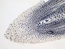 Cet apex racinaire peut manquer chez certains végétaux comme les plantes immergées (cératophylum) ou le marronnier d'Inde.