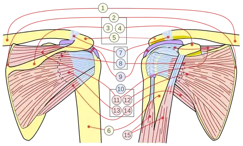 - ↑ La coiffe des rotateurs de l'épaule [vidéo] (Anatomie 3D Lyon - Université de Lyon I)