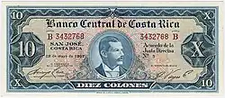 | 10 000 colons, série A | José Figueres Ferrer | Vert | 156 × 66 mm | ||