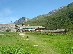Vue depuis le nord-est du refuge de la Valette avec le col à droite. | ||||