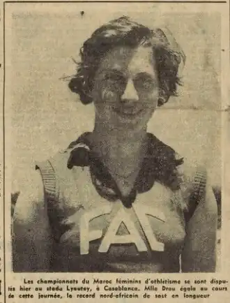 - ↑ « Colette Drou à 10 cm du record de France », Le Petit Marocain, (lire en ligne)