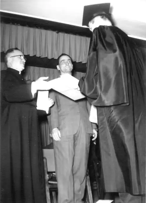 En juin 1969, les diplômés du 34e cours (1961 à 1969) forment le dernier groupe à compléter le curriculum « moderne » du cours classique dispensé au Collège Sainte-Croix. À cause du climat agité et de la contestation étudiante qui ont marqué les années 1968 et 1969[24], il n'y eut aucune cérémonie de collation des grades pour cette promotion.