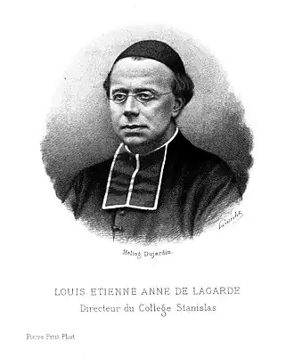 - P. Joseph Simler, Vie de l'abbé de Lagarde, directeur du collège Stanislas, Paris, V. Lecoffre, 1887.