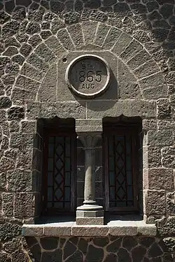 - Gargouille restaurée et restes du blason remontant à l'époque britannique.