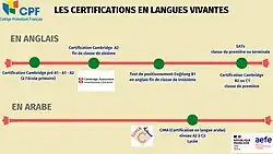 - Certifications de compétences en langue arabe, CIMA : Le Certificat International de Maîtrise en Arabe est le tout premier certificat reconnu internationalement pour la langue arabe. Le CPF est le premier centre officiel au Liban qui donne l’opportunité aux élèves, à partir de 15 ans, de valider leur niveau en arabe moderne standard à partir de l'automne 2022.