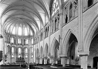 Le chœur est couvert par une seule voûte d'ogives de douze branches rayonnant autour d'une clé centrale. Les absidioles sont couvertes d'une voûte d'ogives à sept branches remontant au XIIIe siècle.