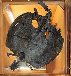 Le corpus des fossiles d'amphibiens comprend un spécimen de Dvinosaurus sp., un spécimen de Trimerorhachis sp., un spécimen de Eryops sp, un spécimen de Sclerocephalus sp., un spécimen de Cheliderpeton latirostre, un spécimen d' Archegosaurus decheni, un spécimen de Parotosuchus nasutus, ainsi qu'un spécimen de Heptasaurus (en) cappelensis[89],[90]. Ces individus, qui sont des taxons de temnospondyles classés dans la famille des Mastodonsauridae, ont été mis en évidence en 1977, dans la formation dite de Lettenkeuper — étage du Ladinien, époque du Trias moyen[89],[91].