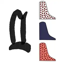 Il représente un flanc de colline, sa couleur bleue renvoie à un remblai de terre. Il est anciennement blanc ou rose parsemé de points rouges évoquant une butte de sable. Il est translittéré ḳ.