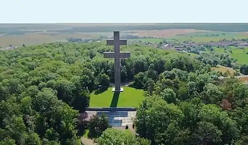 - ↑ La Croix de Lorraine possède les caractéristiques suivantes : hauteur : 44,30 m ; largeur des bras : 19,16 m et 14,12 m ; poids approximatif : 1 500 tonnes ; amplitude au sommet : 10 cm par grand vent (source musée).