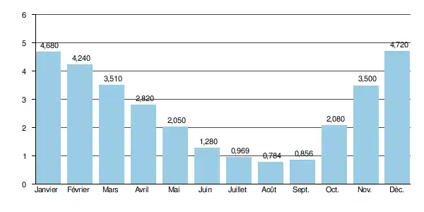 Aux étiages, le VCN3 peut chuter jusque 0,180 m3/s en cas de période quinquennale sèche, c'est-à-dire 180 litres par seconde[2].
