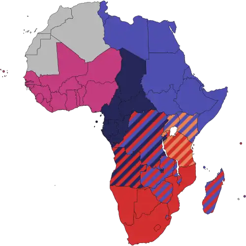 | CEMAC | Commun | UEMOA | WAMZ | Commun | SACU | Commun | ||||||