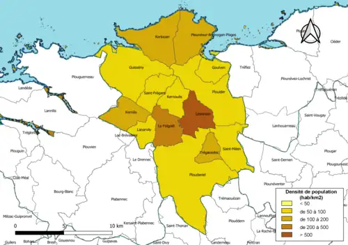 | Ploudaniel | 29179 | Ploudaniélois | 46,28 | 3 738 (2022) | 81 |