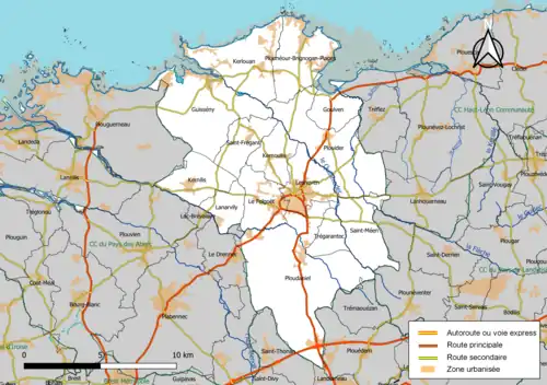 Située dans le nord du département du Finistère, la communauté Lesneven Côte des Légendes regroupe 14 communes et s'étend sur 202,8 km2[4].