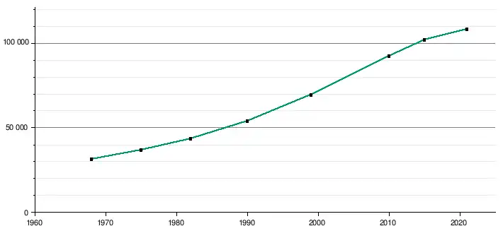 | Bussy-Saint-Georges | 77058 | Buxangeorgiens | 13,39 | 26 334 (2022) | 1 967 |