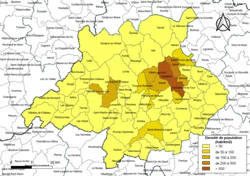 | Naveil | 41158 | Naveillois | 13,28 | 2 439 (2022) | 184 |