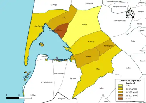 - ↑ « Population en historique depuis 1968 - CA du Bassin d'Arcachon Nord (243301504). », sur Insee, (consulté le ).