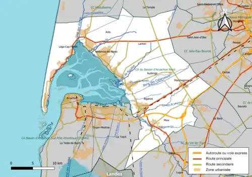 Située au sud-ouest du département de la Gironde, la communauté d'agglomération du Bassin d'Arcachon Nord regroupe 8 communes et présente une superficie de 594,9 km2[5].