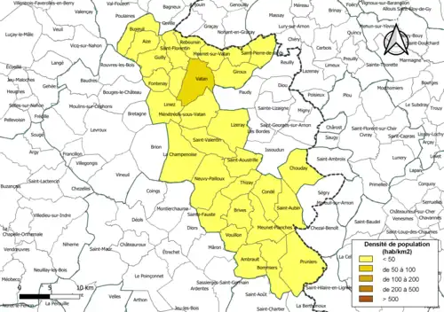 | Saint-Valentin | 36209 | Saint-Valentinois | 24,9 | 263 (2022) | 11 |